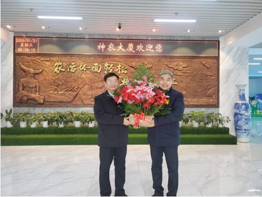 2026年1月21日上午,广西壮族自治区工商业联合会党组成员、副主席蔡家东一行莅临田园公司,亲切慰问公司董事长、科技工作者李卫国,并开展座谈交流。自治区工商联研究室主任王慧玲、副主任方盈月等同志陪同慰问。