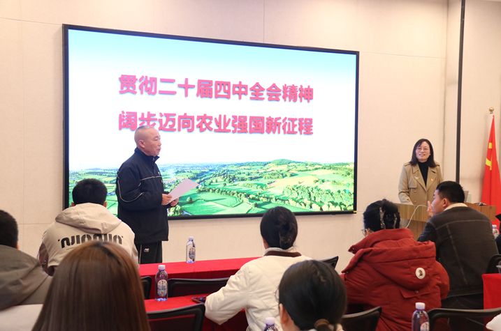 1月26日上午,为深入学习贯彻党的二十届四中全会精神,进一步推动全会精神在广西田园生化股份有限公司(以下简称“广西田园”)落地生根,激发公司党员在新时代农业发展浪潮中的使命担当,广西田园公司党委邀请广西民族大学相思湖学院马克思主义学院秦艳姣老师,开展了一场以“贯彻二十届四中全会精神 阔步迈向农业强国新征程”为主题的专题宣讲会。
