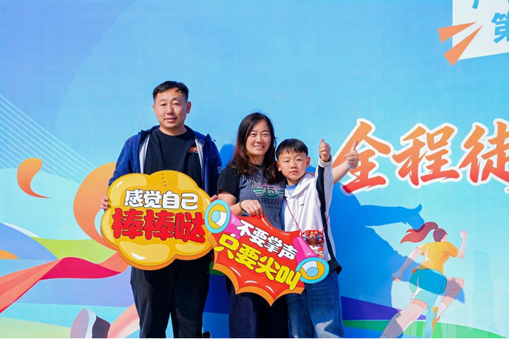 徒步路上,欢声笑语伴着坚定步伐,温暖与活力四处洋溢。途中随处可以感受到青春气息和并肩前行的美好,孩子们眼中满是光亮,“我和小伙伴一起踢着水瓶玩,时不时一起听有趣的故事,到‘体能补充点’一起分享食物,顿时感觉活力十足,跟着走就特别开心。而且有叔叔阿姨带头往前冲,所有人都一起使劲、一起向前的感觉特别棒,”陈宥霖开心地分享途中趣事。