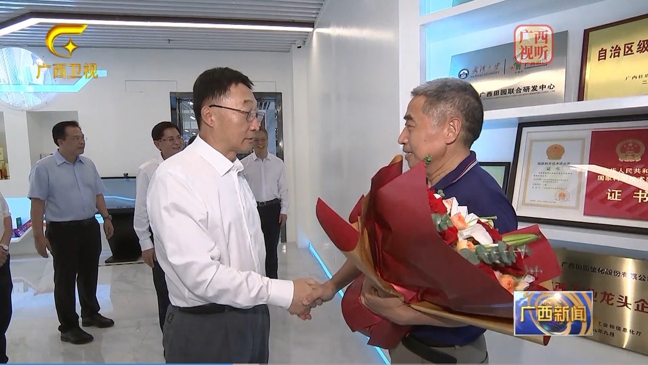 刘宁书记、蓝天立主席等一行视察了广西田园展厅,察看企业创新成果展示,询问了解企业经营、科研有关情况。