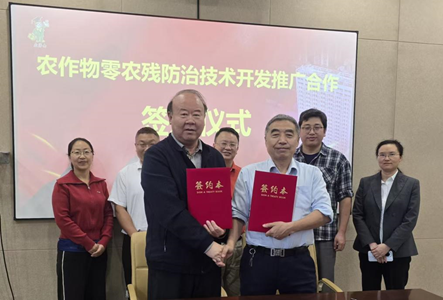 发布时间:2025年12月22日 10:03:46发布者:广西田园股份有限公司  2025年12月15日,广西田园生化股份有限公司(以下简称“广西田园”)与王士奎研究员在公司总部神农大厦签署“零农残”植保技术合作协议。双方将发挥各自优势,聚焦叶菜、柑橘、辣椒、番茄、豇豆、茶叶等对农药残留高度敏感的作物,联合开展“零农残”植保技术体系的研发、集成与示范推广。