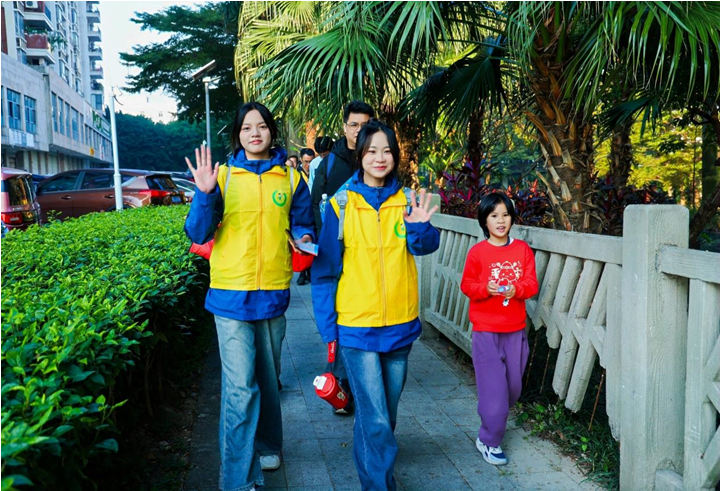 徒步路上,欢声笑语伴着坚定步伐,温暖与活力四处洋溢。途中随处可以感受到青春气息和并肩前行的美好,孩子们眼中满是光亮,“我和小伙伴一起踢着水瓶玩,时不时一起听有趣的故事,到‘体能补充点’一起分享食物,顿时感觉活力十足,跟着走就特别开心。而且有叔叔阿姨带头往前冲,所有人都一起使劲、一起向前的感觉特别棒,”陈宥霖开心地分享途中趣事。