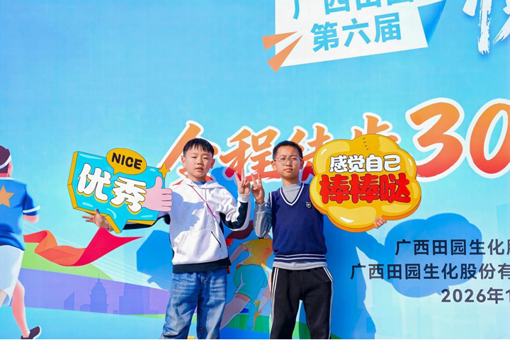 发布时间:2026年02月05日 09:58:39发布者:广西田园股份有限公司  在广西田园第六届“悦走悦健康,悦走悦精彩”30公里全员徒步活动的队伍中,一群活力四射的“小家属”成为冬日里最鲜活的风景。笔者随机采访了几位家长和小朋友,并了解到,在30多名走完全程的“小家属”中,既有稚气未脱的学龄前儿童,也有朝气蓬勃的少年,跟着父母、伴着公司的叔叔阿姨,用稚嫩的脚步一步步丈量完30公里的征途。这些孩子脸上洋溢的笑容、坚持到底的韧劲、互帮互助的纯真,不仅为徒步活动增添了无限活力,更藏着广西田园30多年深耕不辍、行稳致远的成长密码。
